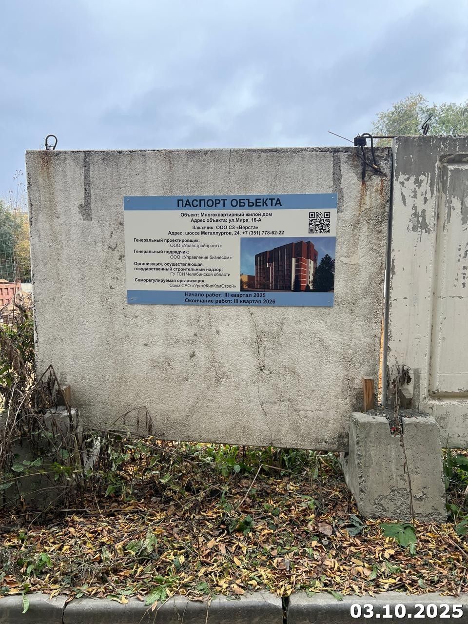 Ход строительства ЖК «по ул. Мира» от 1 ноября 2025г.